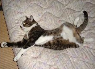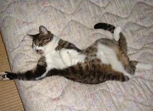 ママのお布団の上は気持ちええなぁ。。。