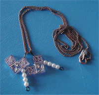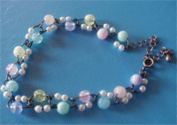 | 母がハマルと子供もハマル。ビーズで作ったブレスレットはあめ玉をモチーフにしたそうな。 | これはチューリップをイメージして作ったプレスレット | これは左のプレスレットのお揃いで作ったネックレス、 |