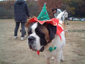 ランディー君も帽子をかぶって、サンタさんに。 |