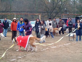 小雨の降る寒い日でしたが、犬も人も真剣にゲームに取り組み、