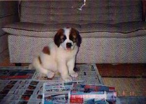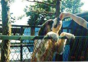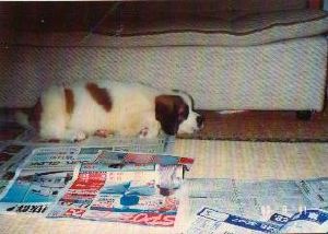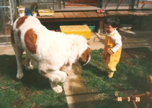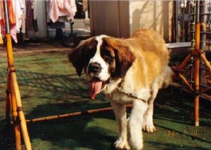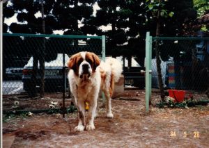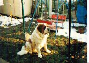 初代バーナードのジョリーです。 1983年生まれ ♂ 毛並みがよく非常に大きなバーナードでした。 8才で亡くなるまで我が家の子供たちと共に 成長し、頼もしい家族の一員で、私たちにとって は念願のバーナードとの暮らしでした。 今は我が家の庭の片隅に眠っています。 |