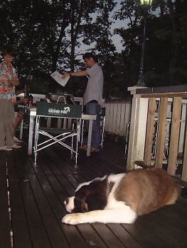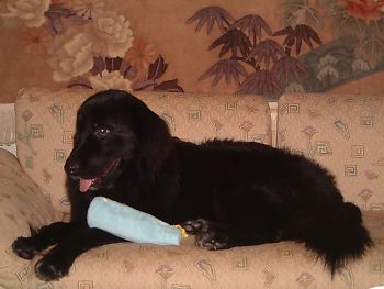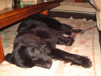 いい匂いがしてきたので、レオンも『伏せ』して待っています。 |