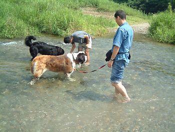 | レオンは、川の水が冷たくて気持ちいいのか、寝てしまいました。 |