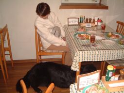 ニュートンも夕食に参加。