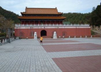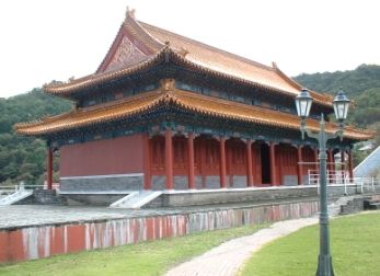 | 中国建築の裏側にはなぜかガス燈が。。 | この公園のメイン「万里の長城」入り口。 やっぱり沢山の石像がズラリ。 |
