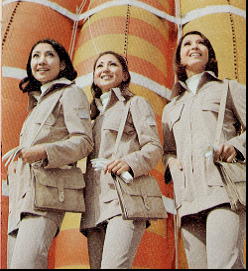 「ガイド」や「ホステス」と呼ばれていた様だ。服装も当時は奇抜な物もあった様に思うが、今見るとけっこう地味に感じる。