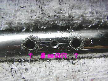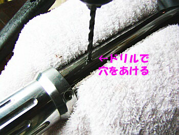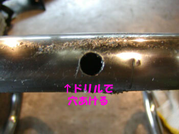 ほんとはリアブレーキの配線の穴も一緒にあけときたかってんけど、