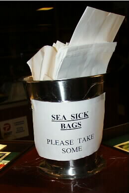 両舷ラウンジでは、これが1.5メートルほど離れて2個並んでました・・・。 ウシュアイアで乗り込んだ時は、「果たしてこんなに必要なの?」と思いましたが、 船内生活の日数を重ねるにつれ、確実に減っていったところをみると、やはり 必要不可欠なものだったんでしょうネ。 (^_^;