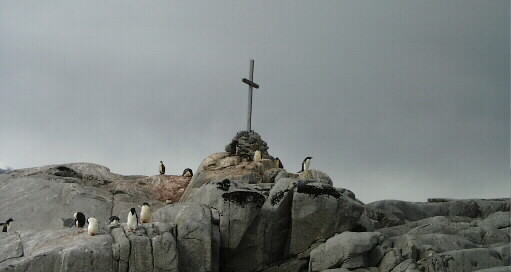 この、丘の上にある十字架は、1982年、調査中に遭難した3人の英南極調査隊・隊員ための慰霊碑だそうだ。