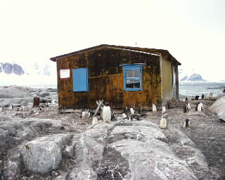 (追記:中に入った人の話によると、小屋の中は土産物屋になっていて、ペンギンの形のマトリョーシカが商品として売られていたそうです。そうと知っていれば、お財布もって上陸したのに〜。笑)