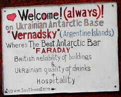 | 追記の追記(5/08) 旅行後、3度めの“難極大揺れ友の会”と称してのトルコ料理宴会があったのだが、マリンエクスペディション側・添乗員の花岡さん曰く、「ピーターマン島には現在使われている基地はないはず」とのこと・・・。 ??? 私が見た、「かもーん、かもーん」の髭面のオジサンは何だったのだ?人伝に聞いた、「小屋の中では土産物屋が・・・」は何だったのだ? ううむ、その時その場にいた人だけが白昼夢にさらわれてしまったのかしらん? それともそれとも・・・・もしやして亡霊??(ぞぞっ!) でも冷静に考えると、あの小屋で生活するのは、たとえ南極の夏シーズンでも無理だと思う。 どこか近くの基地から通勤するなんて、そんなあほなこともなかろうし・・・。 うわぁ〜、嫌過ぎっ! (>_<)/ |