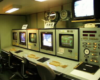 室の正式名称をしっかりメモしておらず、ゴメンナサイ。 ともかく気象観測&解析のための部屋です。 左側の担当官さんが、「お一人ですか?」と質問なさったので「ハイそうです」と答えると、写真左側のドアから、観測したものを解析するためのマシンルームへと案内してくださった。 |