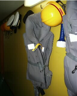 | 襟元がとても暖かそうなところから察するに、甲板上での作業用なのだろうかと思ったのですが、実は救命胴衣だそうな。 | ![]() |