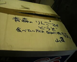 格納庫にこんな言葉を書いたダンボール箱が。 後にパソコン通信の方で知ったのですが、りんごは比較的消化が良く、暴風圏に入った時などは非常に重宝するそうです。 船酔い防止には、軽い食事を摂るのが良いそうだけど、りんご以外にも生姜が効くんだそうな。 ミルクやお湯に生姜の粉を溶いたものを暴風圏に入りそうな前にあらかじめ飲んでおくとか・・・。 私も南極ツアーの時にはリンゴと生姜酒(“しょうがゆ”を変換するとこれになる)を持っていこう! |