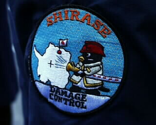 水色の繋ぎの制服、上腕部に付けられたワッペン。 可愛い!! 御覧になってお分かりのこととは思いますが、その絵や「ダメージコントロール」と刺繍してあるように、火災・浸水等艦に被害があった場合にその被害を最小限にくいとめ、艦の航海能力等を維持する活動を指すのだそうです。 |