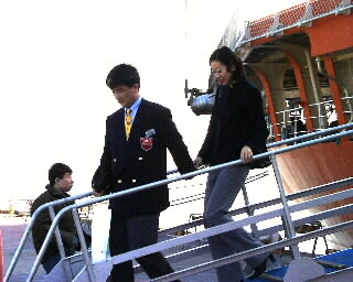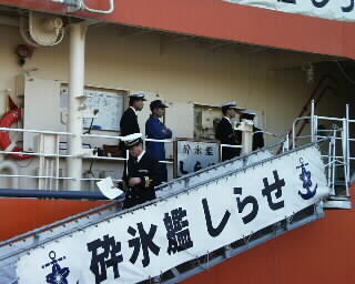 | 観測隊員の方と、それを見送りにいらした恋人?奥様? 仲睦まじく手を繋いでいらっしゃるのがとても微笑ましくて、あまり個人のプライバシーとなるような姿は撮影しないつもりだったのだが、つい撮ってしまいました。 その後出港時まで、何度かこのカップルさんを見かけた。 いわゆる劇的なシーンを目にすることはなく、場所が場所でなければどこにでもいるようなカップルさんなのだけど、旅立つ方、見送る方と、立場は完全に分かれていることを思うと、他人の私でも一瞬胸がキュッと詰まる思いがする。 再会の時が素晴らしいものであること、陰ながら祈ってますね。 |