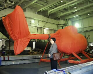 | 完全にカバーで覆われ尽くされた偵察用小型ヘリコプター (しまった!これの説明書きをメモするのを忘れてしまいました) 余談だけれど、アメリカのアーティストで、身の回りのもの、目につくものを全てカバーリングしてしまうアートを公開していた人がいたっけ・・・。 目的こそ異なるカバーリングではあるけれど、普段ならばゴチャゴチャとした部分が目について、あまりしっかりとは分からない輪郭。 そんなものが見えてきて面白い。 |