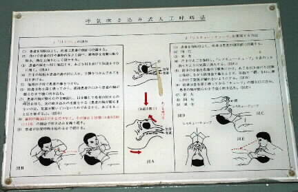 ![]() 格納庫の奥に貼ってあった『呼気吹き込み式人工呼吸法』 |